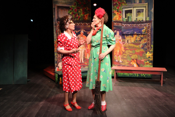Надо сказать, Байкала, оставленного в названии, на сцене нет. Иногда в постановках, которые, к слову, идут во многих российских театрах, Байкалом кличут собаку, вдоль забора сушится на верёвке рыба, да одна соседка тычет в глаза другой, что в её доме полно хрусталя – недаром муженёк столько лет рыбинспектором! Но в общем, географической привязки и не требуется. Такая ситуация могла приключиться в любой деревне, включая мексиканскую. По итогам соцопросов, самые частые претензии в семейной жизни – про малые заработки и недостаточную помощь по дому. Народ везде одинаковый. А вот кадриль в спектакле есть: в мизансценах актёры задорно пляшут (хореограф – Сергей Прибытков, - прим. автора). Кстати, режиссер-постановщик дополнила художественную канву пьесы эпизодами с участием героев в молодости, в оригинале их нет.
