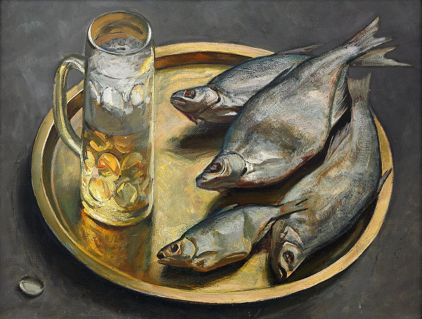 - Да, вижу - «Натюрморт с календарём», «Селёдочка». Вы любите рисовать рыбу и пивные кружки? Мойва, селёдка, ещё что-то сушёное… Это таранька?