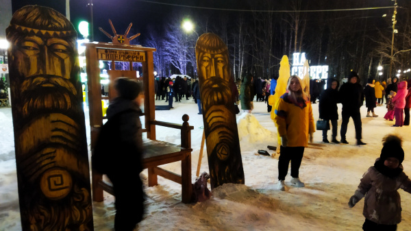 В минувшие выходные в Ковдоре встретили таким образом Новый год. Ну может, кроме факелов - открытый огонь пожарные запрещают, а уж разноцветных гирлянд, игрушек, фонарей в Гиперборейском парке было предостаточно. Встречали по-гиперборейски, и - уже четвёртый год подряд - первыми в России. Напомним, турпроект "Ковдор - столица Гипербореи" реализует администрация города в содружестве с компанией "ЕвроХим".
