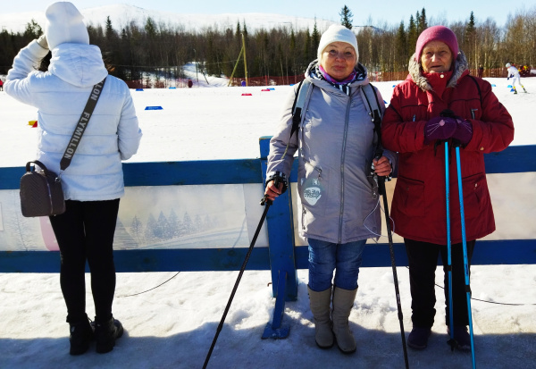 Сами – не из спортсменок, но всю жизнь – на ногах и с людьми. Александра Алексеевна – дворником и санитаркой, Любовь Сергеевна – продавцом и кондуктором. Это всё, не считая общественных работ, вроде переборки картошки и, конечно, домашней нагрузки – в качестве матери, жены и бабушки. Так что активный образ жизни - в крови и биографии. Года им – не беда, и современная скандинавская ходьба – на пользу. На стадион они пришли с палками, и салютовали ими победителям.