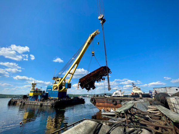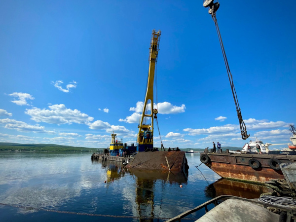 «Два месяца мы готовили судно к подъему, обрезали под водой, делили на куски, чтобы их мог поднять стотонный кран, - рассказал Виктор Юрьевич, руководитель водолазной компании, которая занималась подготовкой и подъемом. - Мы подняли фрагмент крана.Далее мы будем пилить на более мелкие куски, перевозить на разделку. А дальше будет утилизация и сортировка».