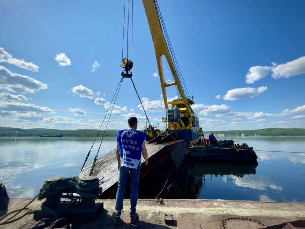 После профессионалов к работе подключились волонтеры «Чистой Арктики», они помогли собрать легкий мусор, который всплыл в процессе подъема судна.