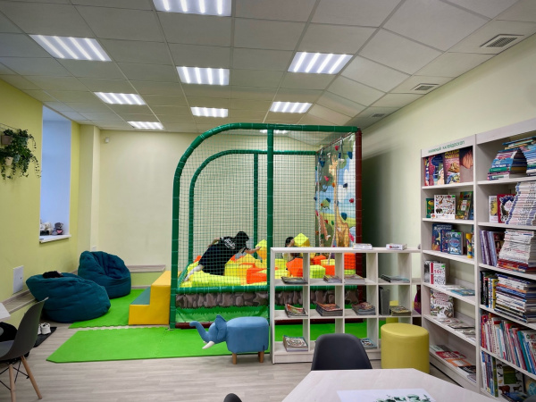 Также для посетителей действует сенсорная комната и библиозал, где оказываются привычные для библиотеки услуги.