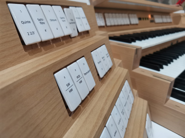 Далее орган не претерпевал больших изменений, кроме электрической трактуры. Трактура – это способ передачи сигнала от клавиш органа с клапанами и другими устройствами, открывающими или закрывающими доступ нагнетаемого воздуха к органным трубам. Раньше использовалась пневматическая или механическая трактура. Это было очень обременительно и громоздко. И в таком случае пульт прикован к одному месту на сцене.