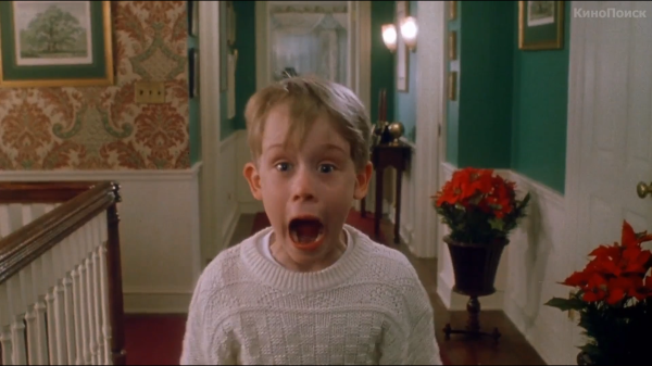 - Все помнят знаменитую сцену, где Кевин намазал лицо лосьоном для бритья, а его лицо было удивленным. По сценарию Маколей не должен был держать руки на лице. «Но он держался в такой же позе, как персонаж на картине Эдварда Мунка «Крик». Мы еле удержались от смеха и сняли этот эпизод с первого дубля», — вспоминал Крис Коламбус.