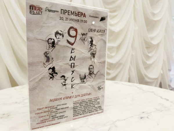 По жанру, «Девятый выпуск" – драма взросления. Это история о первом Поступке и о том, что за ним может последовать. На афише указано «16+», но можно свободно ставить «12+» - один поцелуй да пара шуток про гормональный фон. С этой постановки начнётся 86-й сезон. К семейному просмотру рекомендуется.