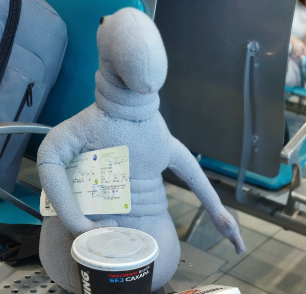 А еще я взяла в тот отпуск с собой собственноручного сшитого Ждуна и везде его фотографировала: и в аэропорту, и в Сочи, и на пляже, и на закате. Отпуск получился прекрасным: мы все по очереди чуть не утонули, потом сгорели на солнышке, потом меня покусали еноты, и я впервые в жизни увидела ежа. Большого такого, нажористого ежа. А потом был шторм и черный флаг, и я помогала незнакомым девушкам выбраться из воды. А потом все наладилось: море и солнце к нам привыкли, и мы провели потрясающее лето, собрали миллион белых ракушек. А ещё тем летом я купила потрясающие супер-удобные тапки. Они позитивного цвета фуксии, а по виду – чисто хачапури. Правда на два размера больше, но я в них влюбилась и купила. Вернулись мы с соломенными волосами и ровным загаром. Ждун до сих пор дома, а в тапках я иногда веду эфиры. Хорошо, что слушатели не видят.