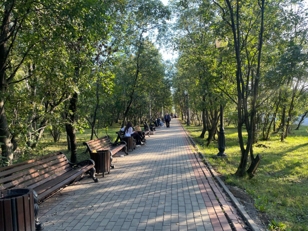 Будьте аккуратны, переходя улицу Александрова, там большой нерегулируемый пешеходный переход. Зато за ним первая жемчужина нашего путешествия – культурно-парковый комплекс имени О.П. Найдёнова, более известный среди мурманчан как Семеновское озеро или, ласково, «Семечка».