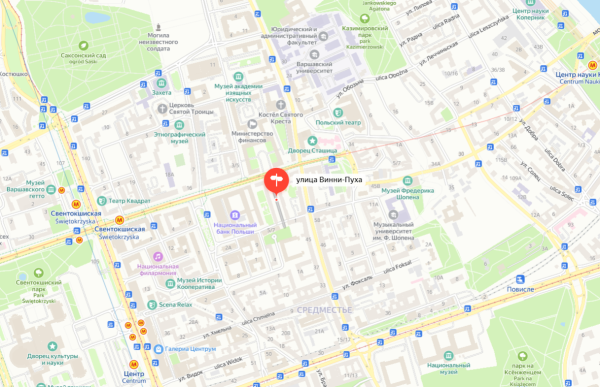 Помимо маленьких и не очень памятников (всех и не перечесть) героям Зачарованного леса, улицы в Варшаве и Будапеште названы в честь Винни-Пуха. Венгры, кстати, называют медвежонка Micimackó (Мицимацко). По легенде, за такое название проголосовали жители страны, когда выстраивали новые кварталы на месте разрушенных во Вторую Мировую войну.