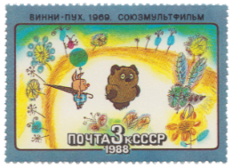 Образ плюшевого медвежонка запечатлён на марках как минимум 18 стран мира. В СССР марку с Винни и Пятачком выпустили в 1988 году. Она похожа на стоп-кадр из мультфильма, вышедшего на экраны в 1969 году.