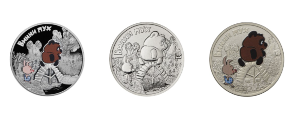 Герои Милна также появляются и на монетах различных стран. Так, в 2017 году в России выпустили 3-х и 25-ти рублевые монеты с любимыми героями. Острова Кука в 2011 году выпустили коллекционный набор из шести пятидолларовых монет с Винни-Пухом, Пятачком, Совой, Кроликом и осликом Иа-Иа. На шестой монете изображены все герои. Серия была посвящена 75-летию «Союзмультфильма», поэтому на них – привычные нам изображения героев, а вот на аверсе – портрет Елизаветы II.