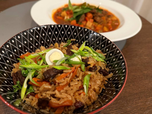 Но вы обязательно попробуйте еще кыстыбый, элеш и губадию. Губадия –особенно интересный пирог, сочетание начинок сначала не укладывается в голове: яйцо, рис и изюм. Всего слоев может быть до девяти. Сейчас это просто очень вкусное блюдо, а раньше считалось, что сколько в губадии слоёв, столько дней после бракосочетания молодая жена может оставаться в доме своих родителей. Еще я нашла в Казани отменный плов по-казански с телятиной. После долгих прогулок, а сейчас в Казани хоть и солнечно, но все же довольно холодно, он согревает и тело и душу. После такой порции появятся силы еще на 10 000 шагов.