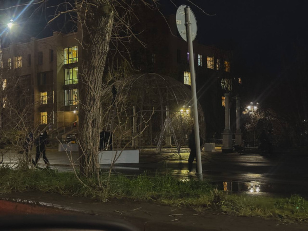 Сегодня в самом центре Мурманска начался монтаж металлического каркаса для главной городской новогодней ёлки.