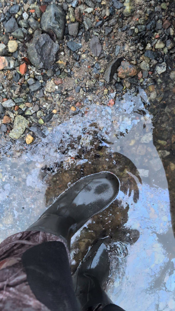 Камни в вязких пятнах, а в воде – черные капли. Это берег Кольского залива в жилом районе Росляково в Мурманске. Разлив нефтепродуктов обнаружил северянин Антон Чайко и забил тревогу в социальных сетях.