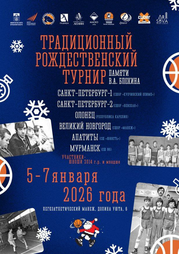 С 5 по 7 января 2026 года в легкоатлетическом манеже Долины Уюта в Мурманске пройдёт XXI Рождественский турнир по баскетболу памяти Заслуженного работника физической культуры Российской Федерации Виктора Александровича Блохина. Соревнования организует Федерация баскетбола Мурманской области совместно с Министерством спорта региона и Центром спортивной подготовки Мурманской области.