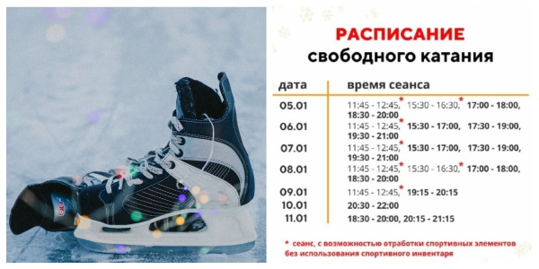 Как сообщает официальный тг-канал спортивного учреждения, количество мест на сеансы ограничено. Вот почему визит нужно планировать заранее и приходите заблаговременно, чтобы была возможность без спешки переодеться, сдать вещи в гардероб и, при необходимости, подобрать коньки.