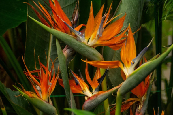 Стрелиция обильно цветёт в оранжерее инсектария, — это специализированное пространство с тропическим климатом, который подходит для теплолюбивых растений.