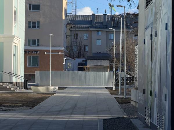 Там уже уложили плитку, установили освещение и камеры видеонаблюдения, смонтировали конструкции для павильона и мест отдыха, идёт уборка территории.