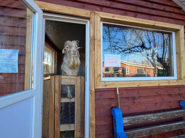 В туристическом парке под Мурманском живёт очаровательный козел Яша. А свой дом он получил по арктической ипотеке, уверяют сотрудники парка. Об этом они написали на ознакомительной табличке, которая размещена у входа.